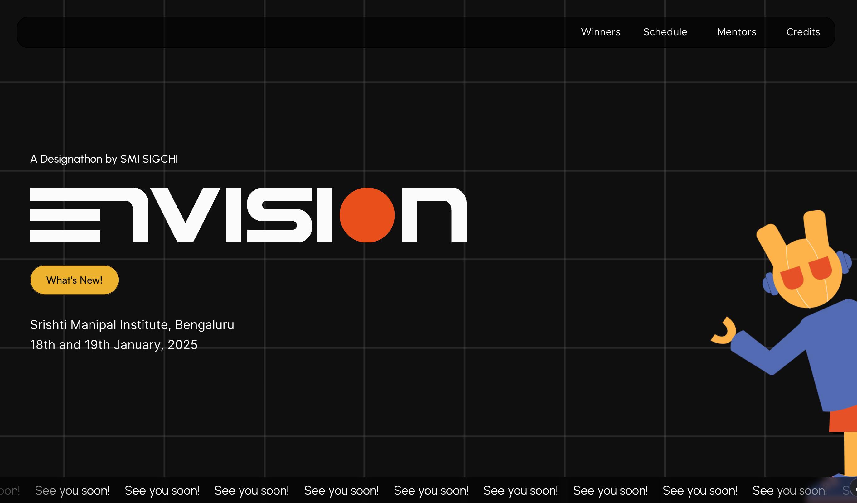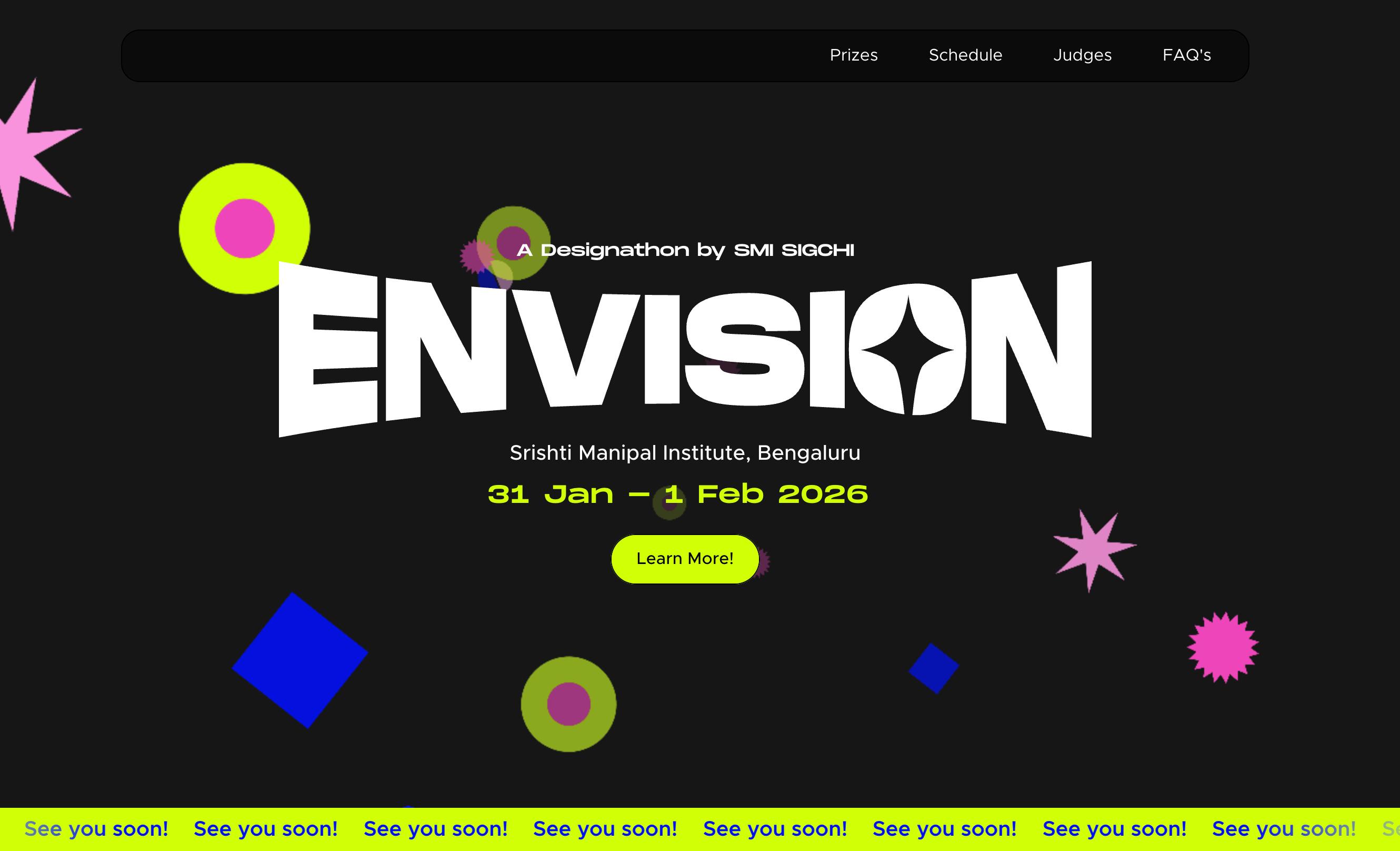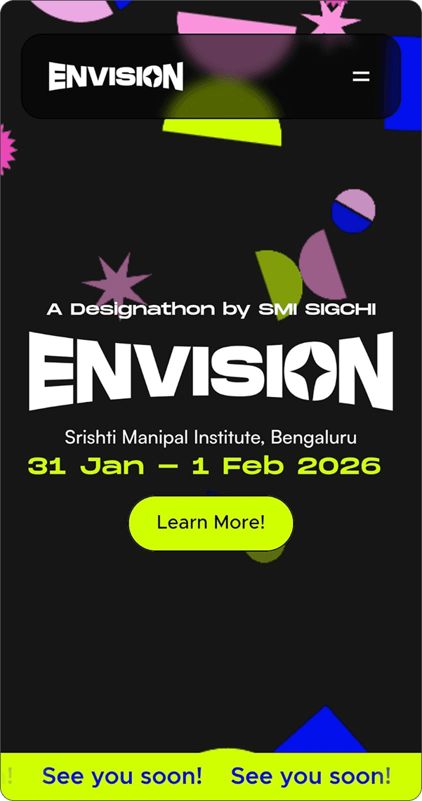 Envision 2025 was SMI SIGCHI’s inaugural designathon. Where I helped design and develop multiple sections of the website, going from ideating to creating wireframes and live updating the site during the event.