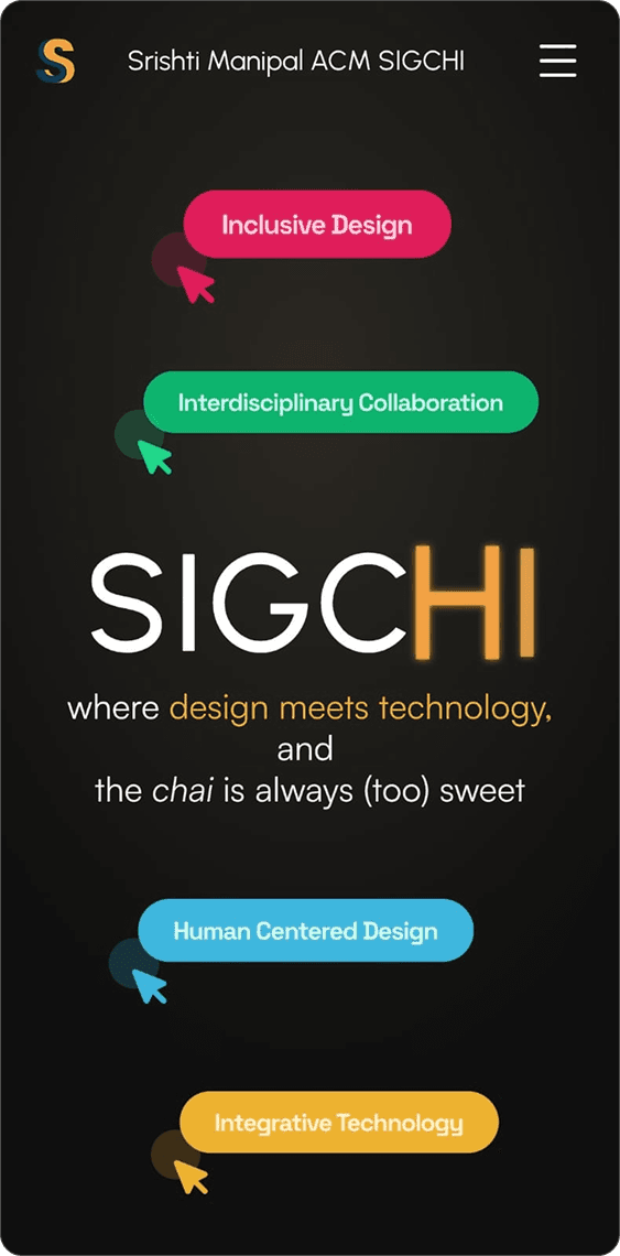 SIGCHI (Student Interest Group for Computer-Human Interaction) under ACM is an international community for students and professionals in Human–Computer Interaction. We at SMI SIGCHI are a student-first club that's building a multidisciplinary HCI community through designathons, workshops and talks focused on empowering students to think creatively and strategically.